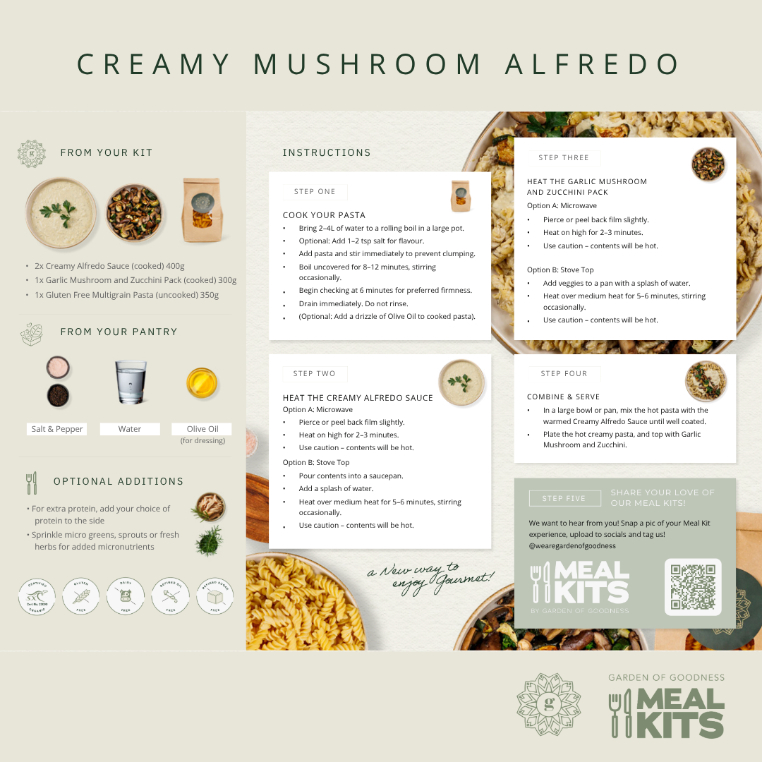 Creamy Mushroom Alfredo Meal Kit Recipe Card